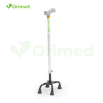 Bastón de aluminio con 4 patas, ajustable en altura para mayor comodidad y estabilidad durante el desplazamiento. Ligero y duradero.